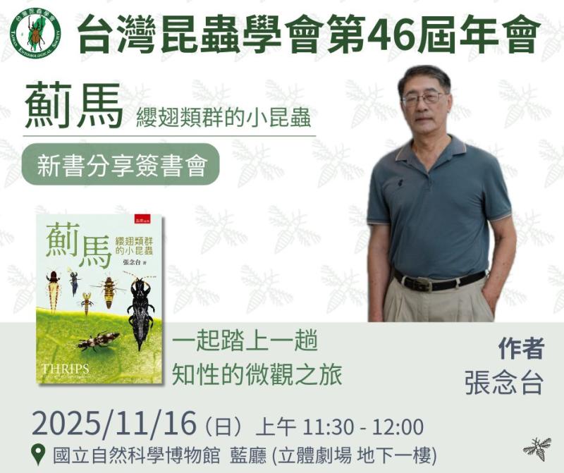 • 昆蟲年會現場將舉辦簽書會,可親自請張老師簽名留念。
